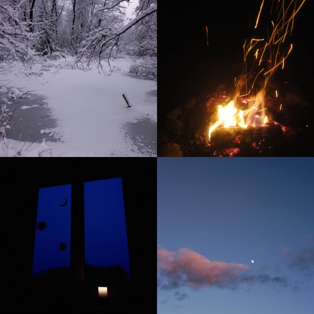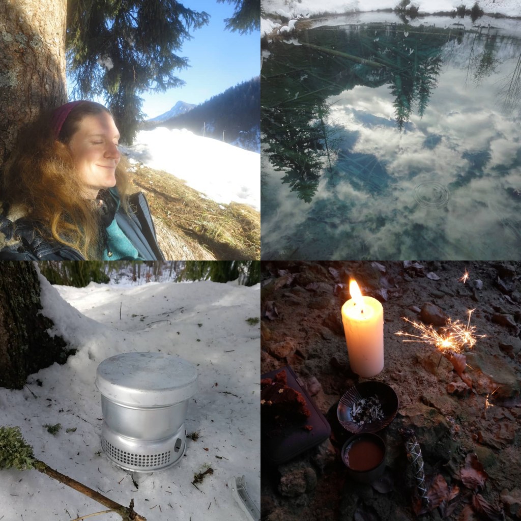 Weihnachten mit einem Teil der Familie draußen am Feuer verbringen mit Punsch und Geschenken und Baum, davor zu Sonnwend ein Ritual im Garten mit Mann und Kindern. Silvester am Lagerfeuer, ruhig und eher besonnen.