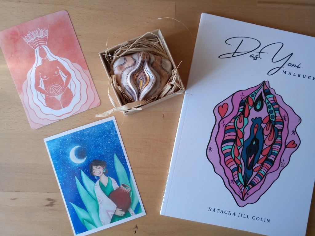Was wäre das Leben ohne die schönen Künste? Gerade in diesen Zeiten finde ich es wichtig, Künstlerinnen zu unterstützen, heuer habe ich ein paar echt wunderbare entdeckt (meist auf Insta…), die ich euch kurz zeigen mag: links oben ist von Ilka (Art from Ilkas Heart, sie macht unglaublich schöne Prints und Linoldrucke, ich durfte auch etwas gewinnen juhu), links unten ist von Yvonne Wagner (ich liebe ihre Postkarten, gibt auch viele tolle mit Sternen ;-), in der Mitte die Yoni aus Porzellan ist von Alice Grey (SelkieArts), sie hat immer wieder so wunderbare Yonis, unglaublich…Mittlerweile gibt es auch mehrere Yoni-Malbücher, das hier ist von Natacha Jill Colin (Tachadesign, gibts auch als Ebook zum Selberausdrucken).