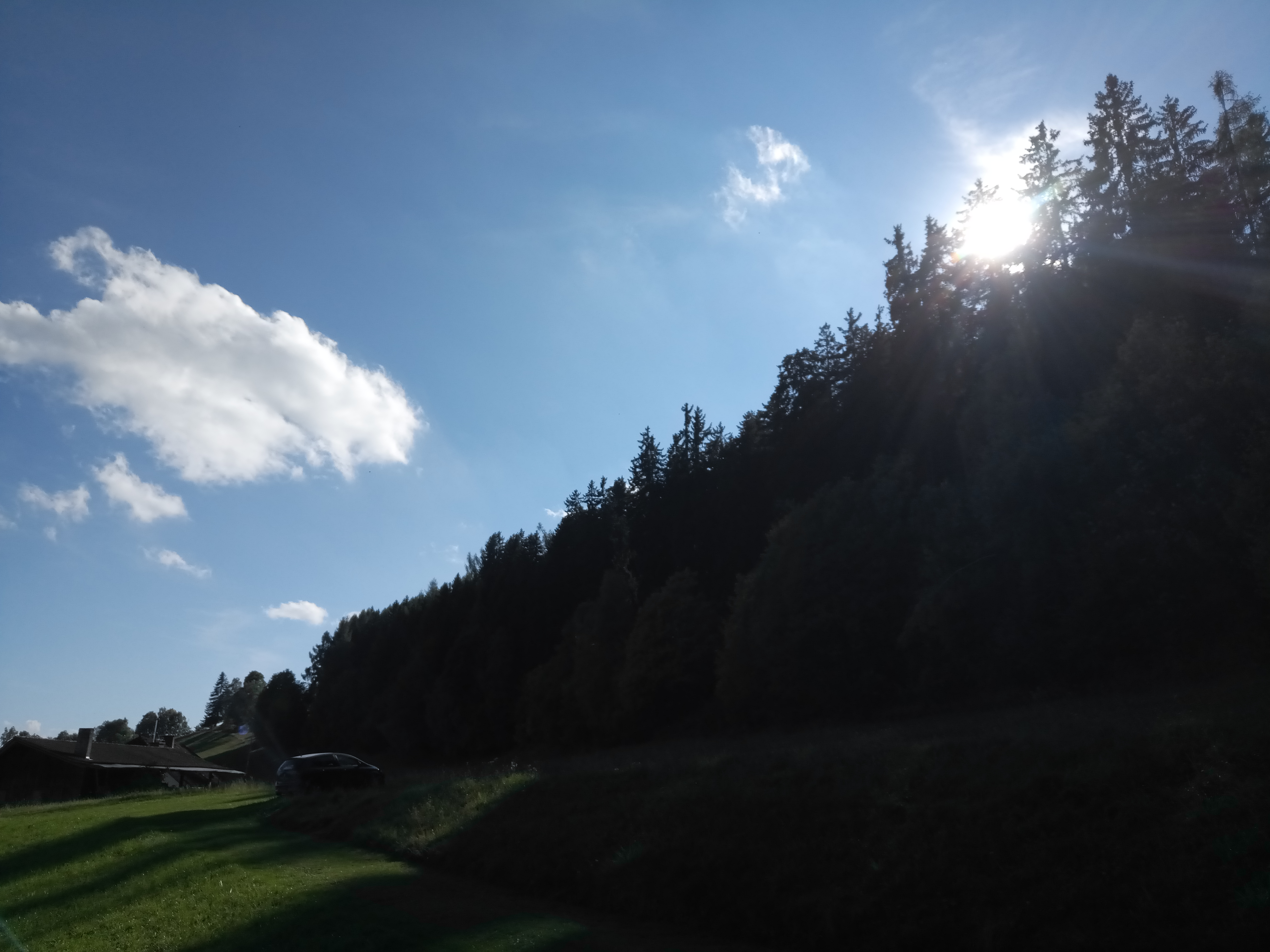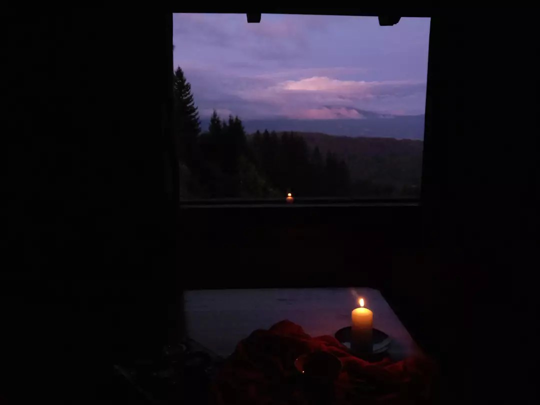 Nach dem Beziehen der Hütte erkunde ich erstmal meine Lieblingsplätze, so früh im Jahr sind manche noch von Kühen besetzt, also mache ich mich auf, höher in den Wald zu steigen auf der Suche nach Sonne, schaue nach, ob alle Bäume noch stehen (nein, leider nicht alle, aber immerhin keine kompletten Kahlschläge) und wie sich alles wieder anfühlt. Das erste Mal wieder Feuer im Ofen machen und mit leckerem Essen die Aussicht auf die Berge und ins Tal genießen. Die Stille. Die Dunkelheit, die hier von Sternen gekrönt ist.