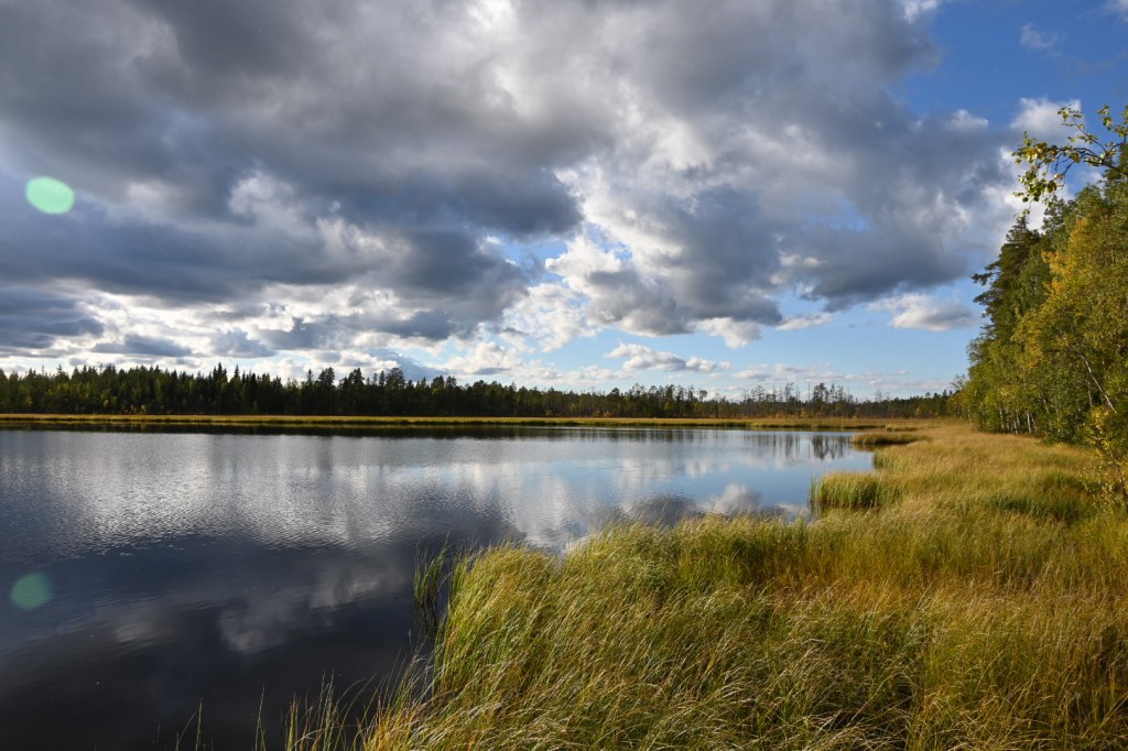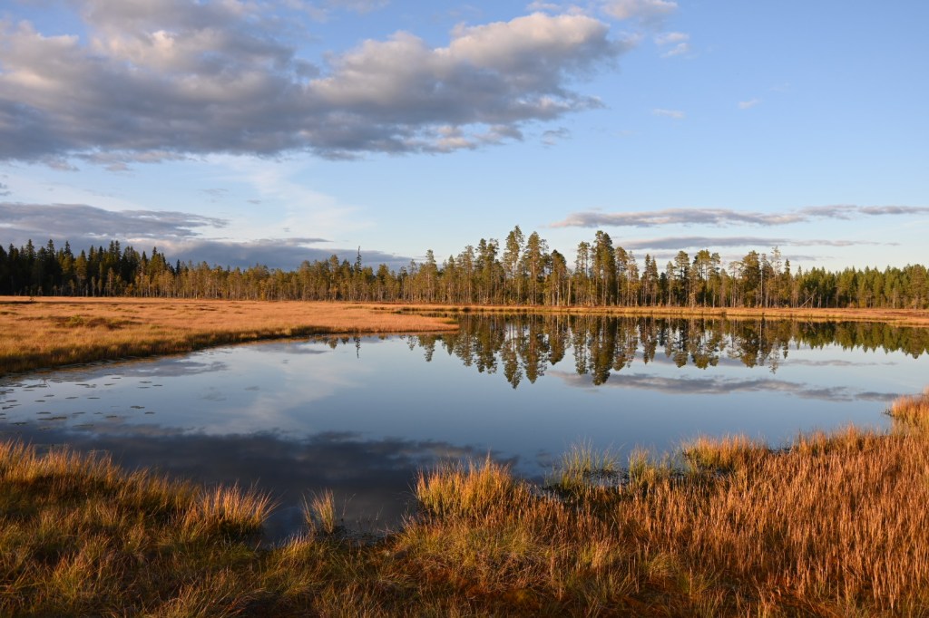 Ab und an paddelte ich auf den See hinaus und schrieb dort Gedichte, während mich das Kanu irgendwohin trieb. Oft saß ich im Windschutz im Schlafsack und schaute auf den See oder machte Yoga unter wunderschönen Birken. Abends machten wir eine gemeinsame Tour flussabwärts, landeten irgendwo an und navigierten mit dem GPS zu einem Moorsee. Es war so ein unfassbar schönes Licht, himmlisch… fliegende Wolken in der Spiegelung, magische Wälder, Moos, lustige Mooshügel, weite Moore… Beeren… rotes Laub… das Paradies! Wollgras, uralte Pilze. Wieder zum Kanu finden und zurück paddeln. Was für eine Freiheit…