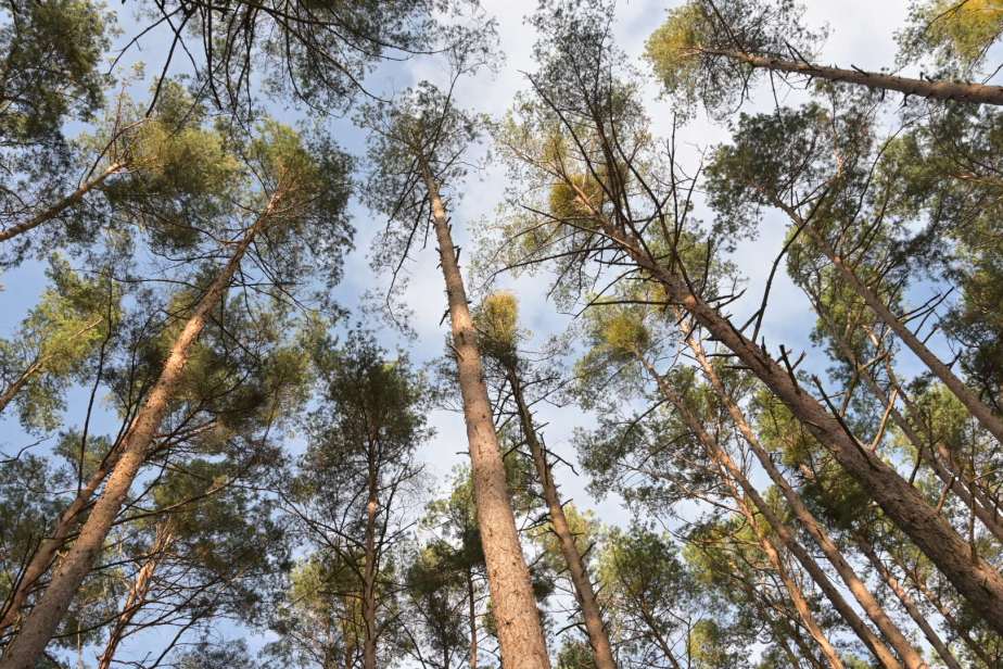 neben windzerzausten Kiefern