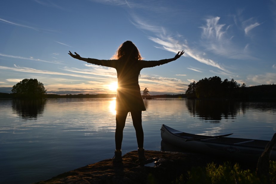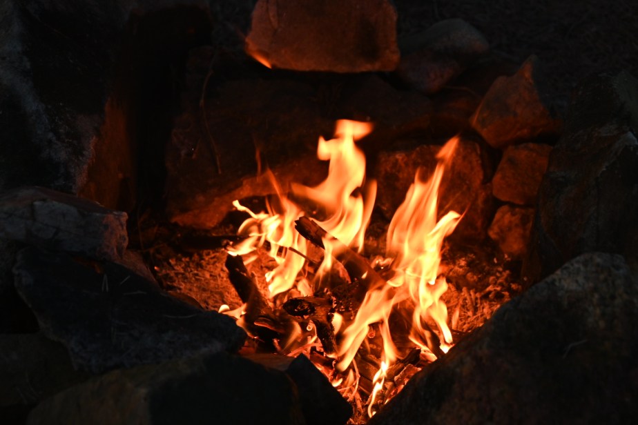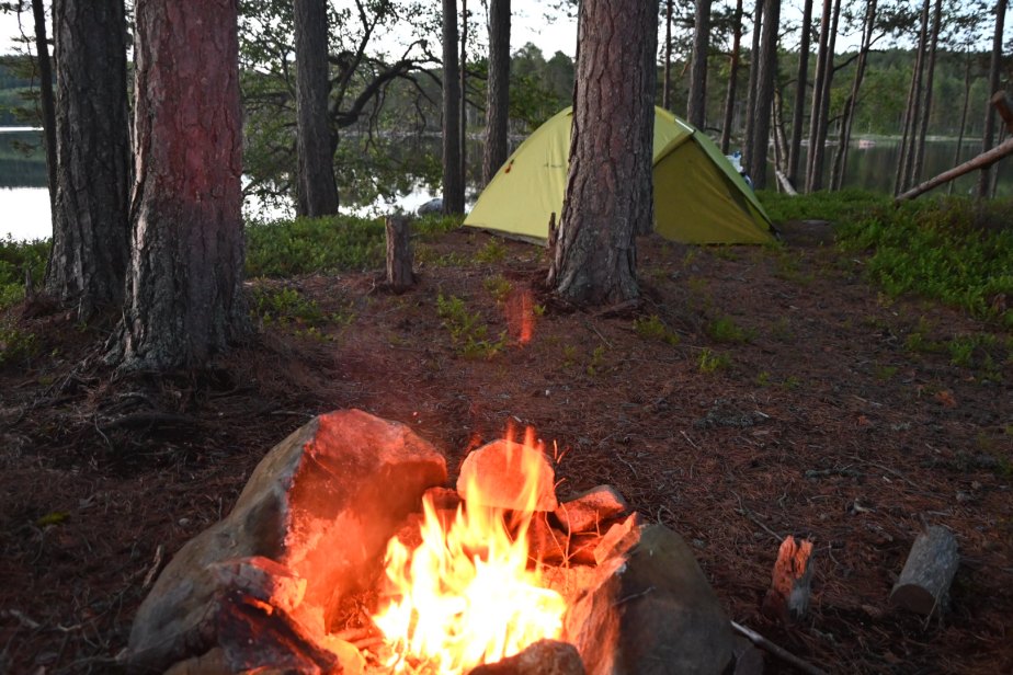 Als ich genug gedacht hatte, machte ich eine Kanutour im sanften Regen. Die Stimmung war auch schön, so ganz anders als gestern im strahlenden Sonnenschein. Nun war alles eher grau, doch meine Innenwelt war bunt und ich spürte kühlen Regen im Gesicht, schaute den Tropfen zu, wie sie in den See fielen, ließ mich treiben, erkundete noch Inselchen und Buchten. Abends machte ich ein Feuer, sang für die Vollmondin und flauschte mich bald ein. Ein paar lästige Gedanken tauchten auf und machten mir das Einschlafen schwer. Meditierte und atmete.