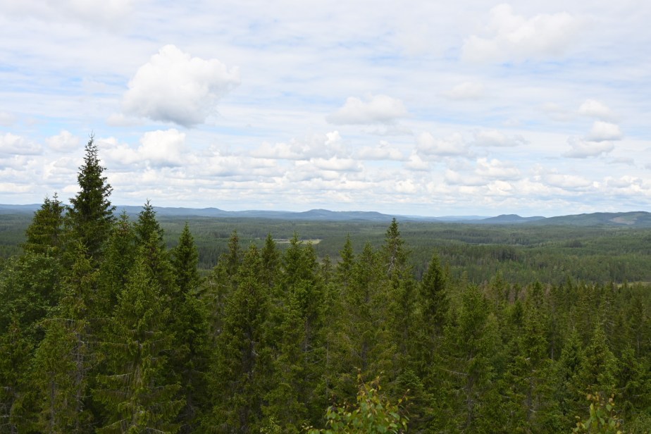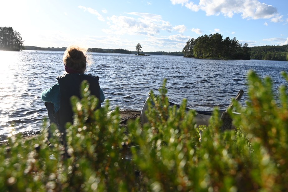 Nach einigen guten Nächten hatten mich die Schlagschwierigkeiten wohl gefunden auf meiner Insel, träumte sehr intensiv und brauchte in der früh sehr lange, um irgendwie munter zu werden und die Bilder der Nacht verschwinden zu lassen. Es zog mich dann auf einen Aussichtspunkt, wo ich zu anderen Ufer paddelte und den Berg bestieg. Ganz schön warm war es am Weg oben, aber der Blick auf Wälder, Moore und Seen wirklich großartig und oben telefonierte ich mit meiner Familie. Fand am Weg sogar schon ein paar reife Heidelbeeren, waren die köstlich! Zurück auf der Insel war es windig und kalt, ich kuschelte mich gemütlich ein im Schlafsack in der Hängematte, damit ich auch immer den besten Blick auf den See hatte. Viele Gedanken schwirrten in mir umher, von schlechtem Gewissen bis Zukunftsängsten waren da spannende Themen dabei, aber die wollen wohl auch gedacht und bedacht werden wie es aussieht.