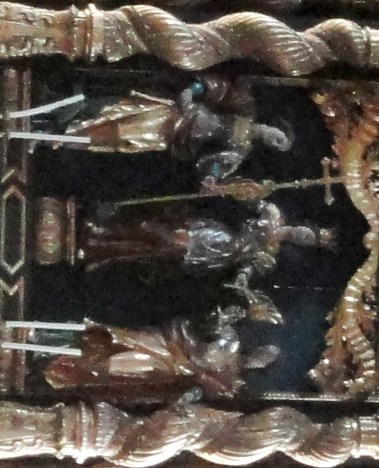 In der Pfarrkirche am Hochaltar befinden sich geschnitzte Holzfiguren aus dem Jahre 1674 der Heiligen Katharina, Margaretha (der die Kirche geweiht ist) und Barbara, darüber eine Madonna mit Strahlenkranz. Ein anwesender Kirchenmitarbeiter wusste nicht einmal die Namen der Heiligen, die er da anbetete… diese „drei heiligen Madln“ sind die Nachfolgerinnen der ursprünglichen Göttinnen-Dreiheit Wilbeth, Ambeth und Borbeth, also der weißen, roten und schwarzen Göttin! Diese Figuren hier tragen alle Palmzweige in den Händen, Margaretha einen Stab und eine Krone und Katharina im weißen Kleid einen Becher…